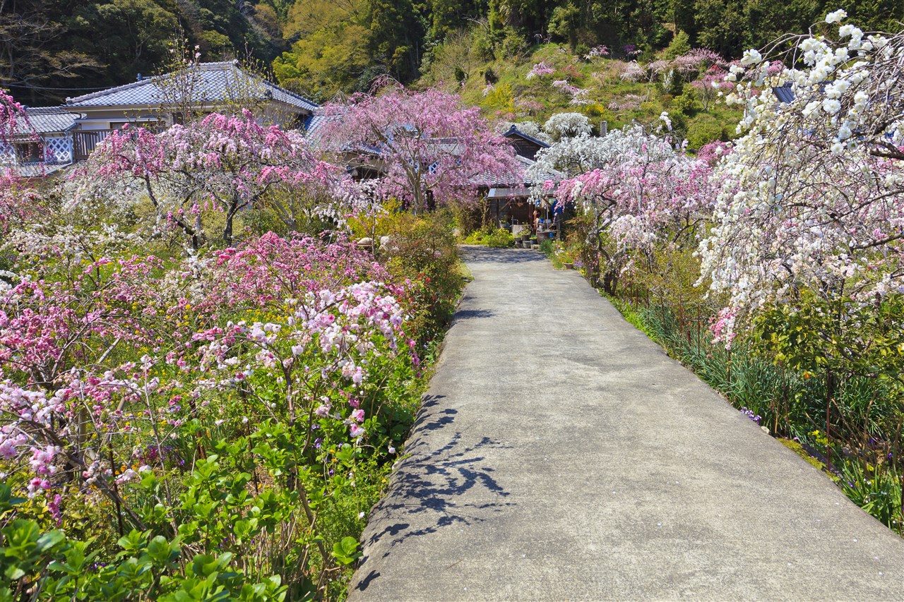 Rendaiji Temple is known as a famous location for peach blossoms. Around 70 peach trees can be found at this location, including those which grow on the hill behind the temple. The deep pink and white blossoms beautifully decorate the entire location.